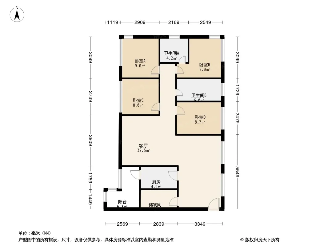 圣采泊尚 4室2厅 西南