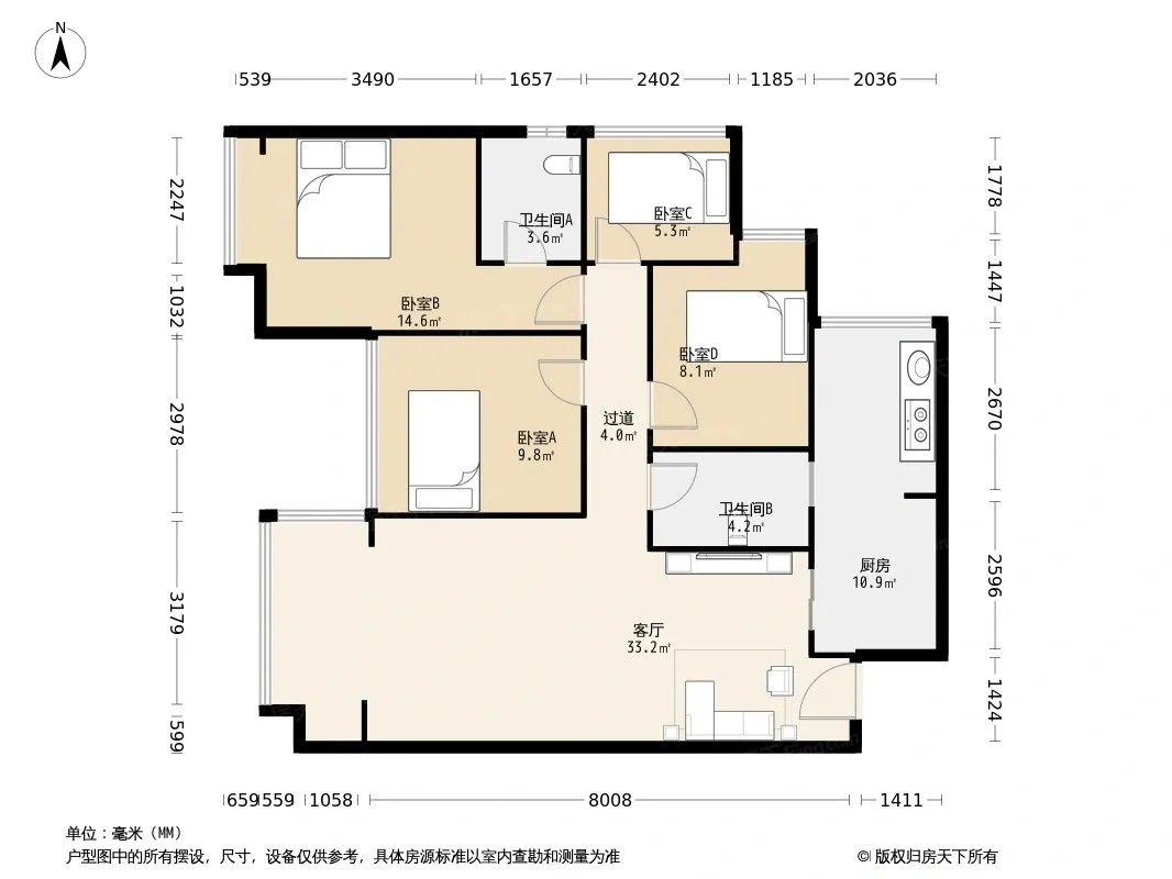圣采泊尚 4室2厅 西
