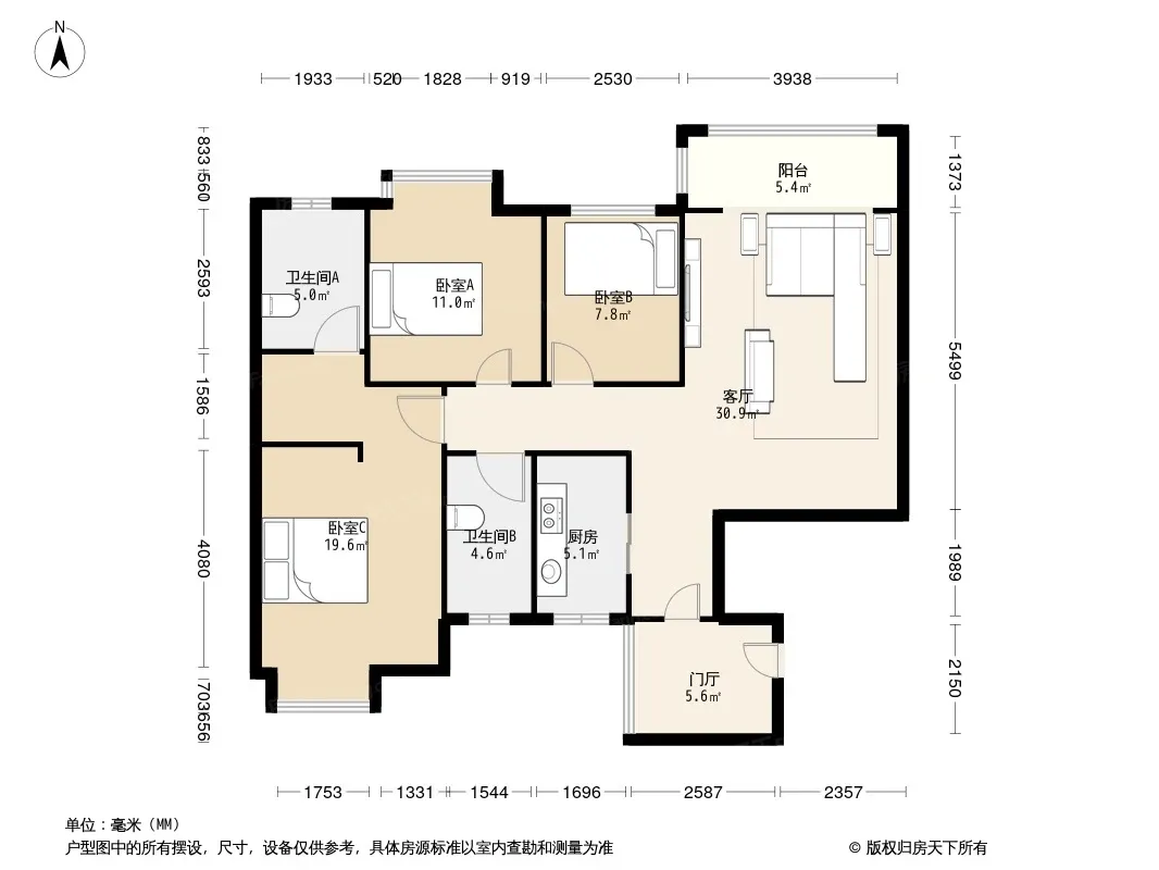 花语岸 3室1厅 北