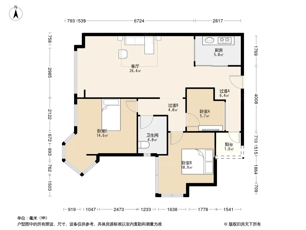 户型齐全,主打主卧朝南三居