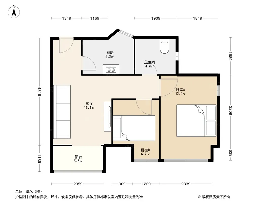 保利香槟光华 2室1厅 南