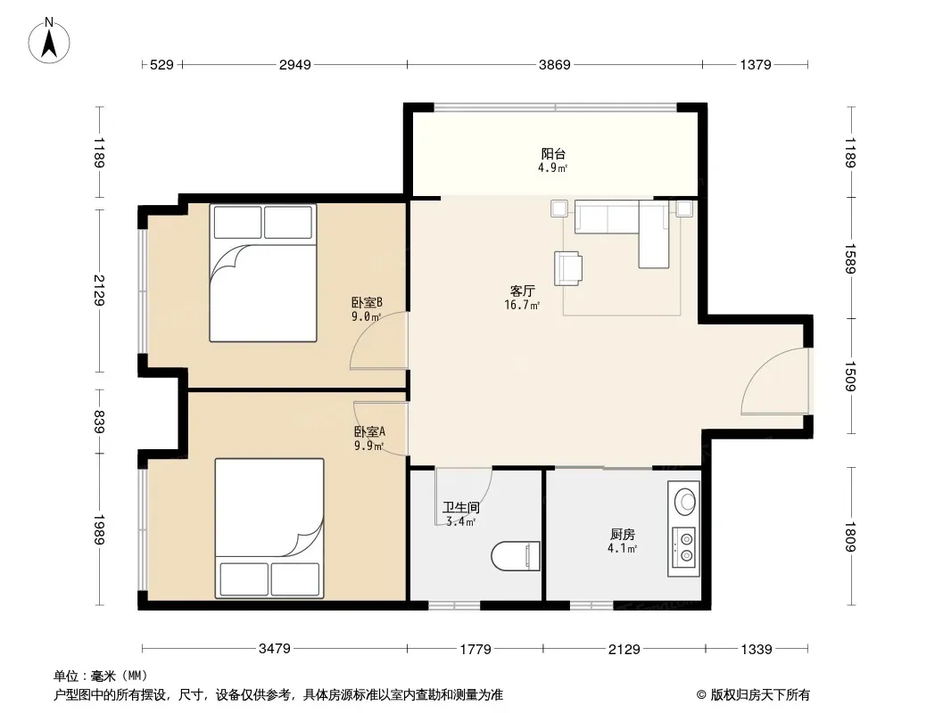 保利香槟光华 2室1厅 北