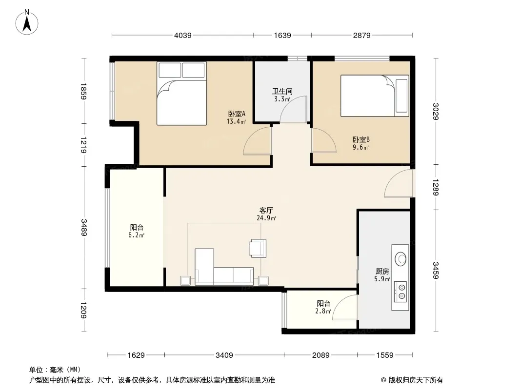 户型齐全,主打客厅朝南,双卧朝南三居