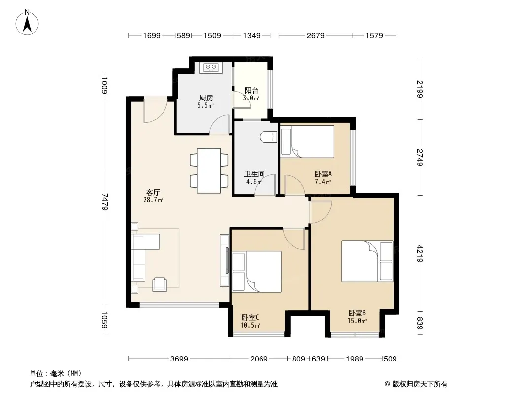 户型齐全,主打客厅朝南,双卧朝南三居