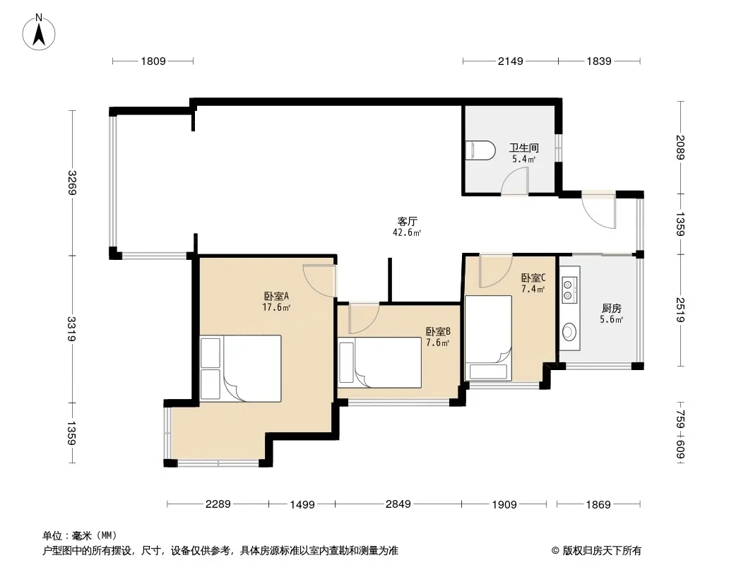 千禧河畔B区 3室1厅 东