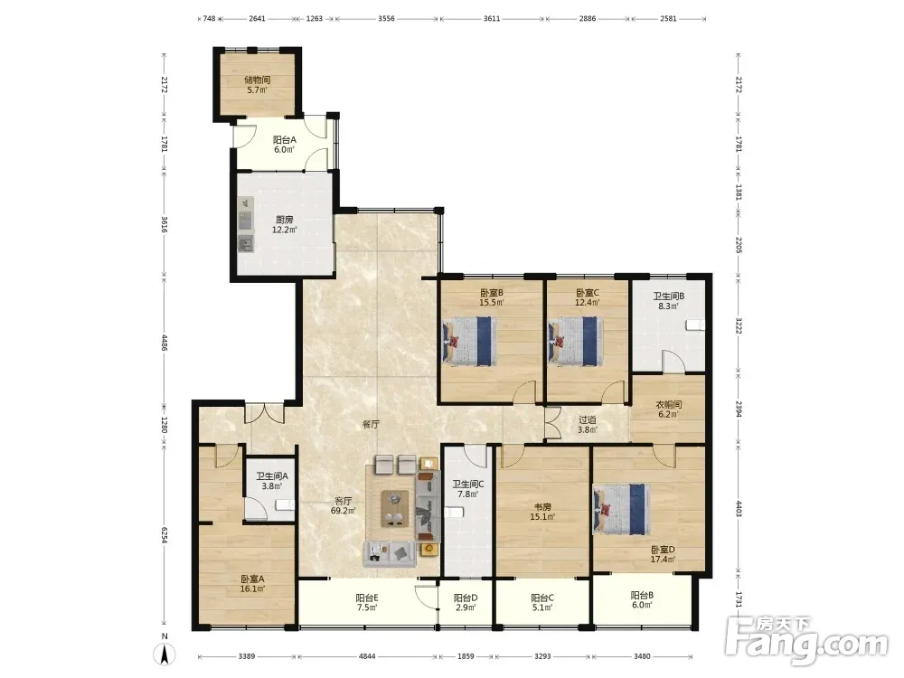 中海城南华府 5室1厅 南