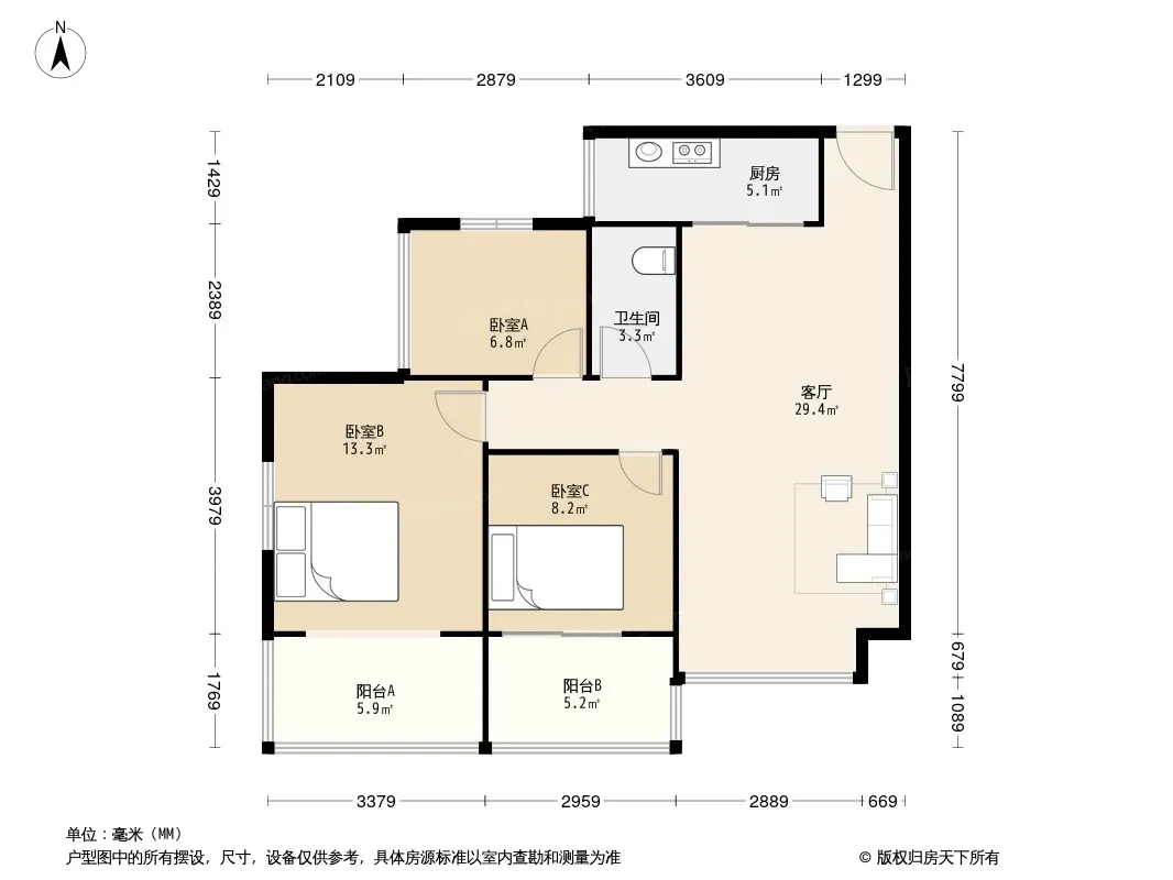 户型齐全,主打明厨,独立衣帽间,双阳台,主卧朝南三居