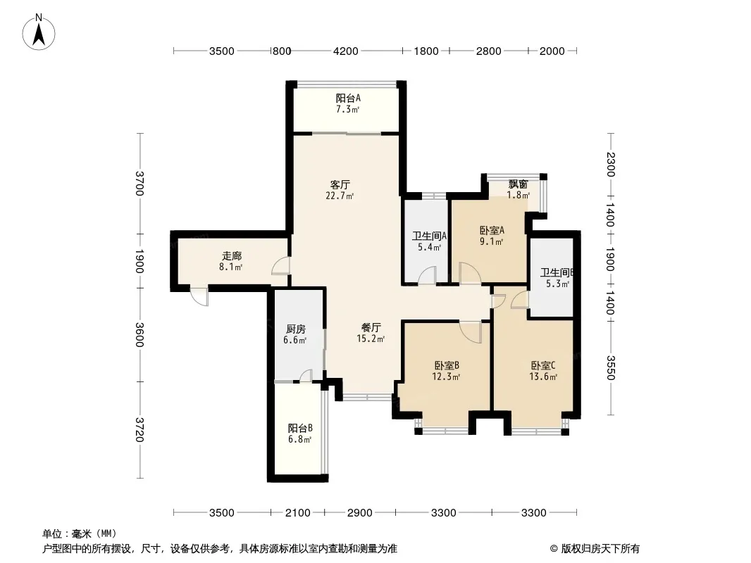 户型齐全,主打南北通透,主卧带卫,全明格局,干湿分离三居