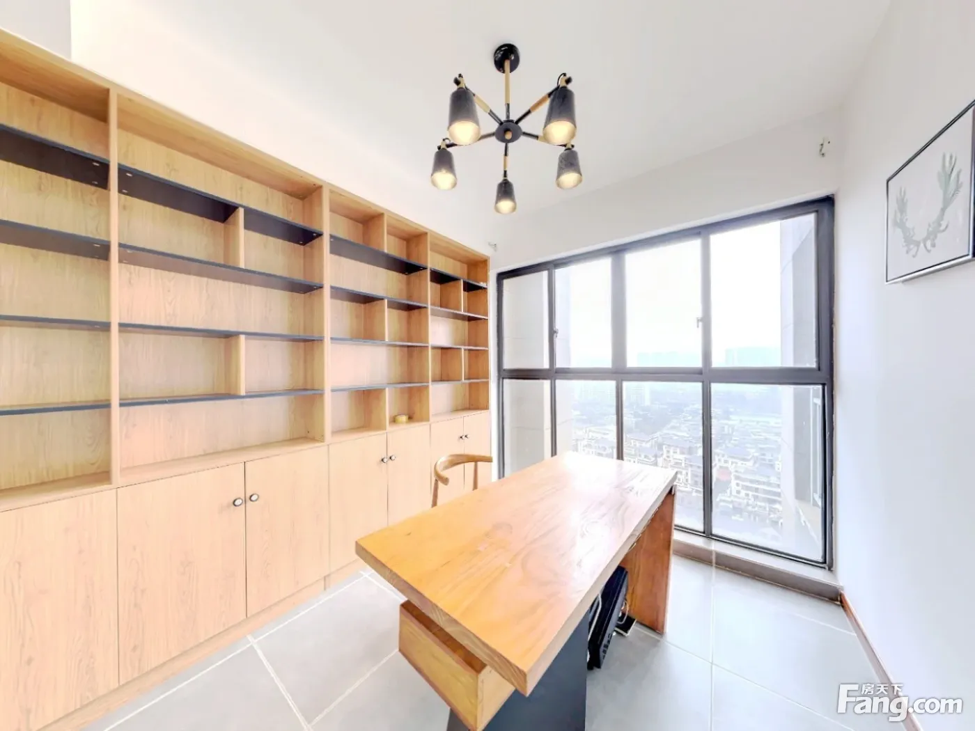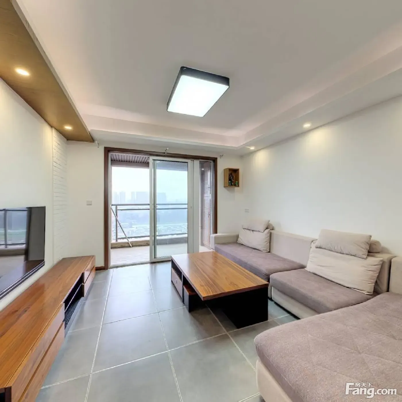 竖厅设计 客厅带阳台 落地窗 客厅阳台正朝南对小区别墅区域,采光充足,视野比较好,次卧和主卧也是朝南,还有一个书房朝东,属于全明户型。