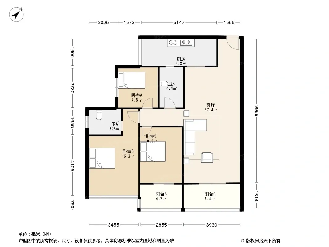 户型齐全,主打明卫,双阳台,双卧朝南三居