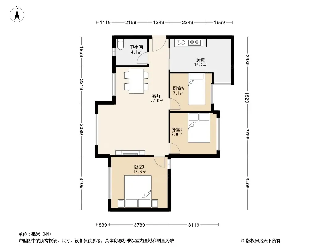 户型齐全,主打户型方正,明卫,客厅朝南三居
