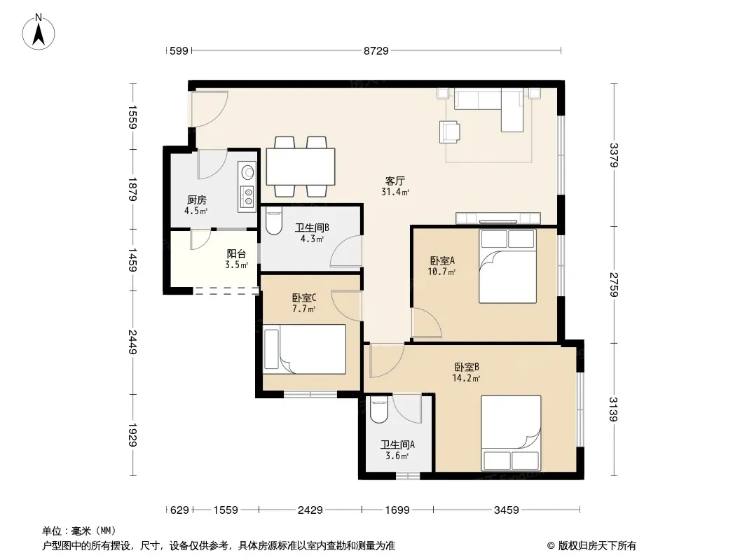 户型齐全,主打户型方正,明卫,客厅朝南三居