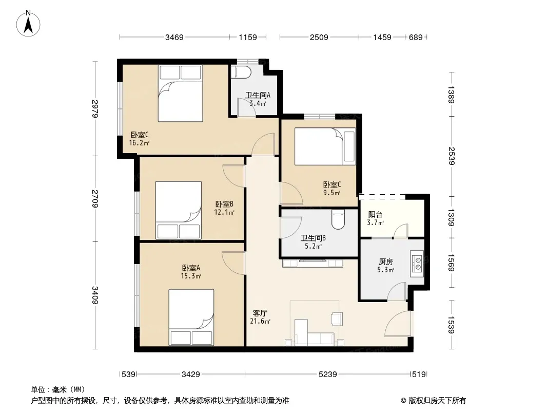 户型齐全,主打户型方正,明卫,客厅朝南三居