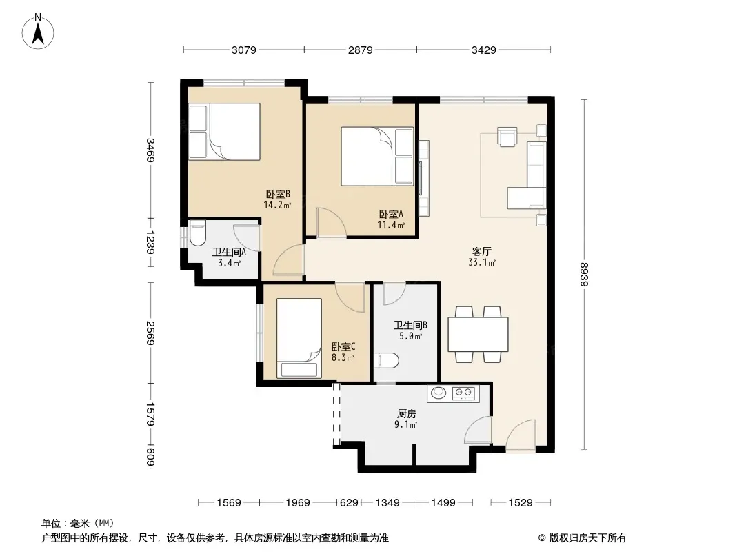 户型齐全,主打户型方正,明卫,客厅朝南三居