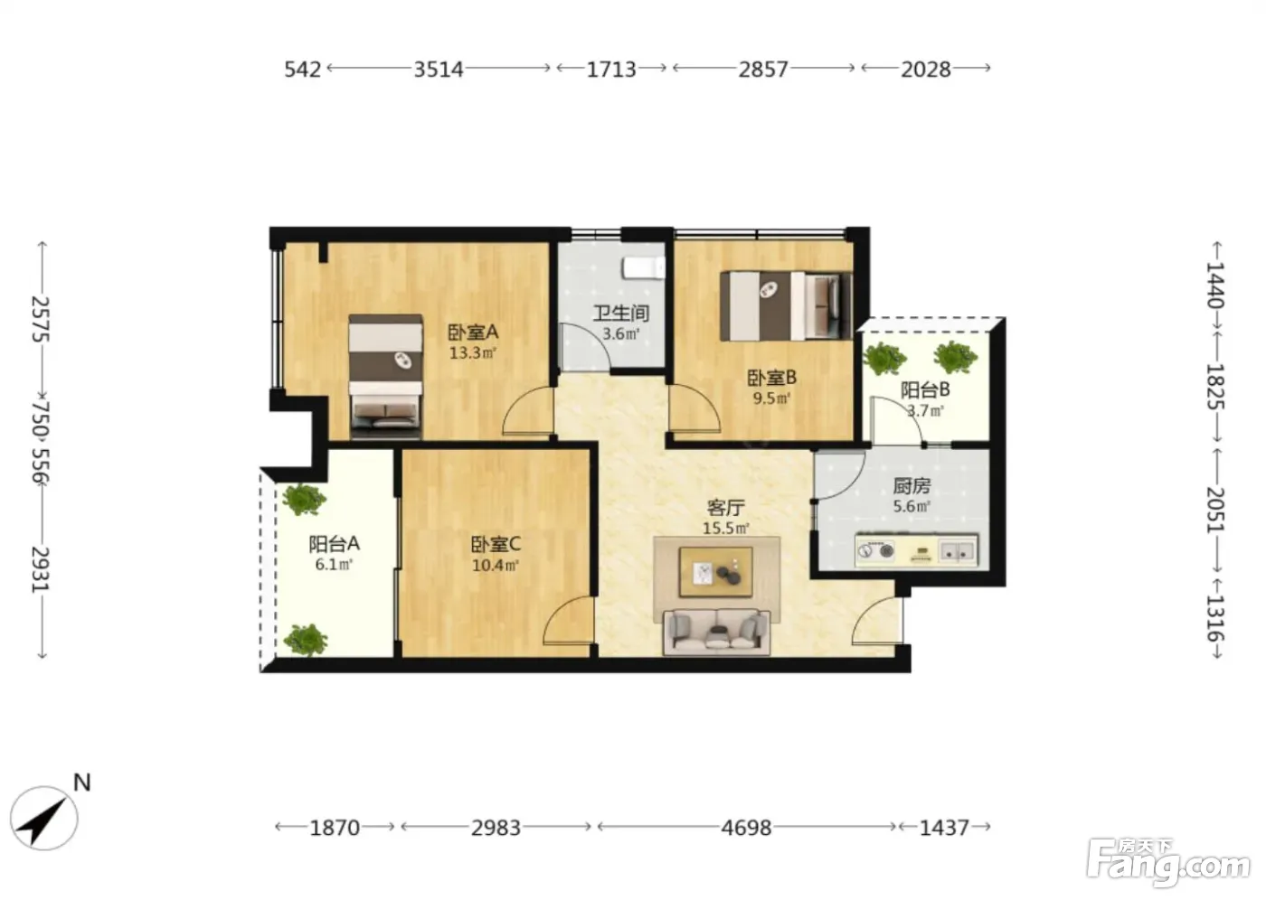 户型齐全,主打明厨,明卫,双卧朝南,主卧朝南三居