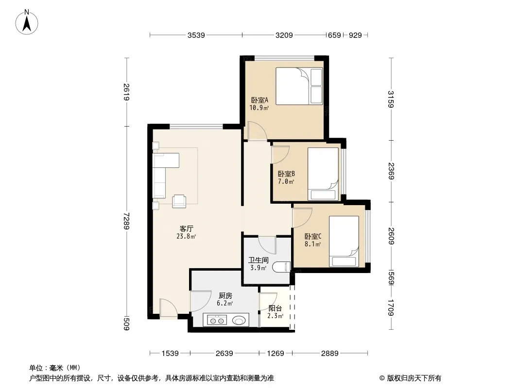 户型齐全,主打户型方正,明卫,客厅朝南三居