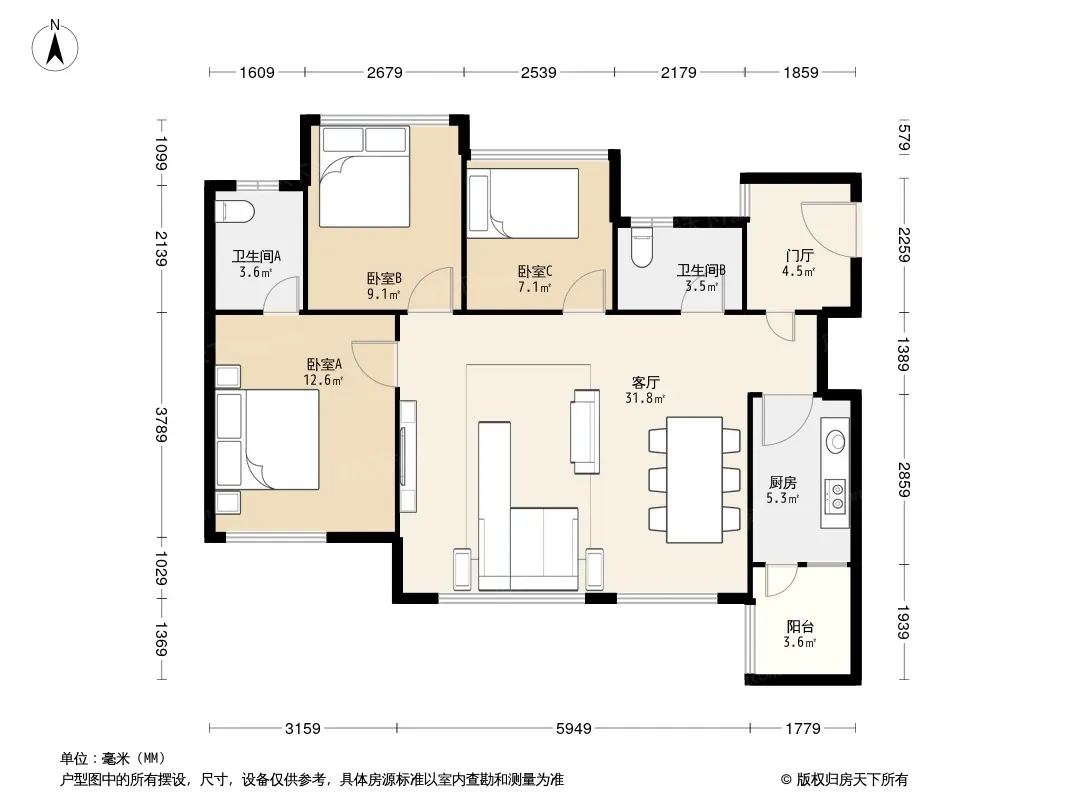 户型齐全,主打户型方正,明卫,客厅朝南三居