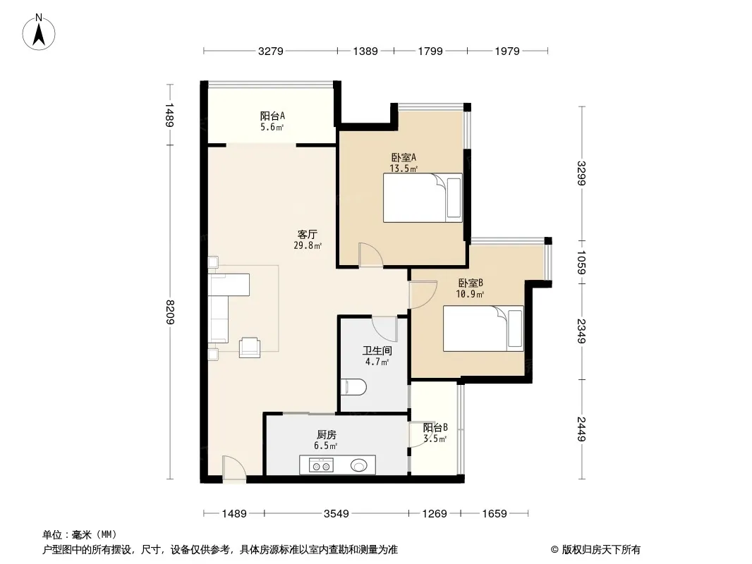 户型齐全,主打客厅朝南二居