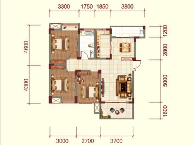 西蜀祥瑞府 3室1厅 东南