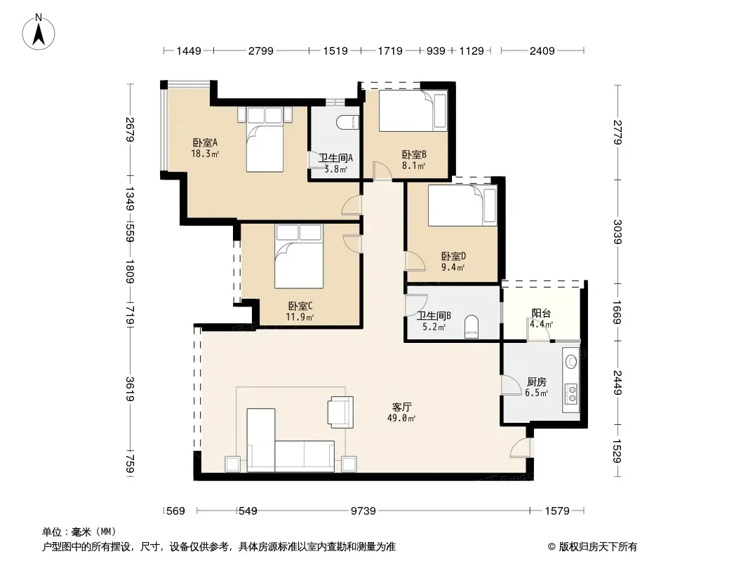 保利叶语 4室2厅 南