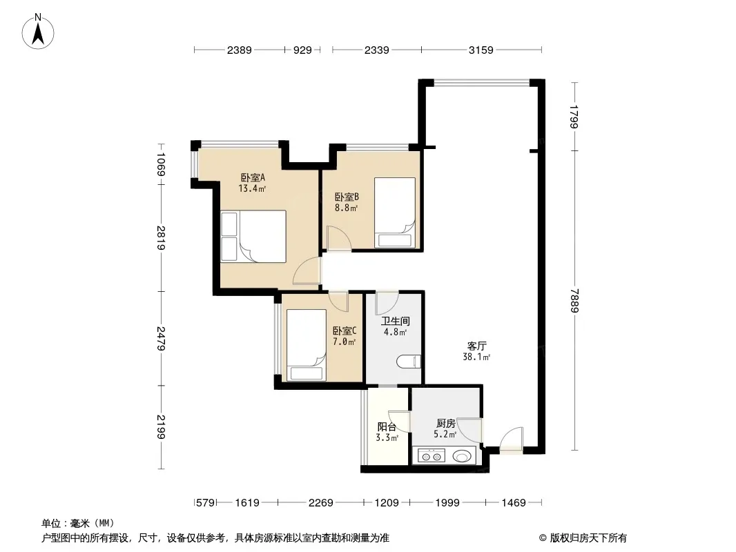 户型齐全,主打明卫,双卧朝南三居