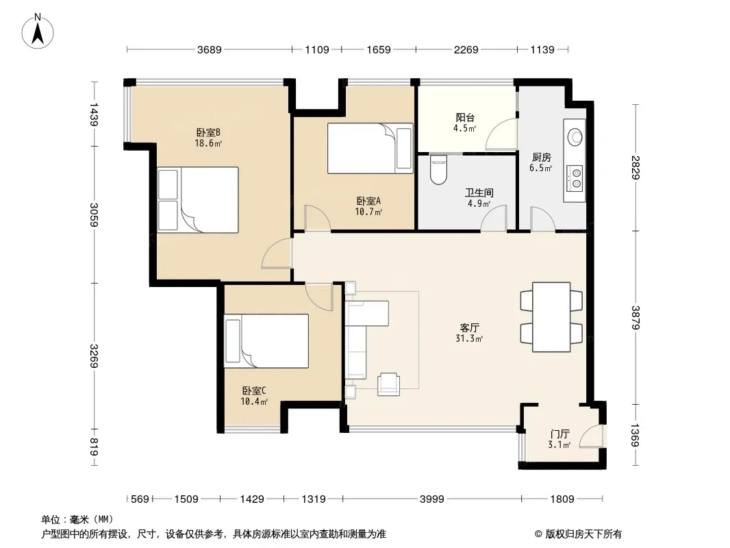 保利叶语 3室1厅 西南