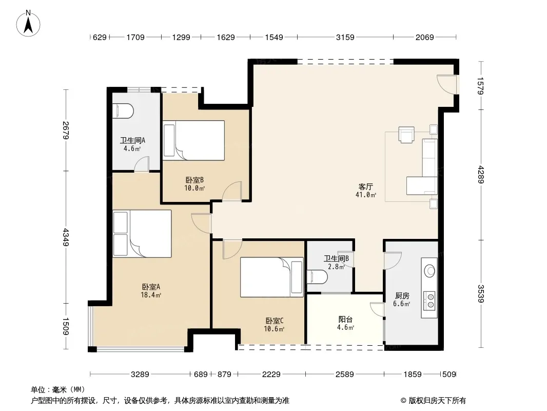 户型齐全,主打明卫,双卧朝南三居