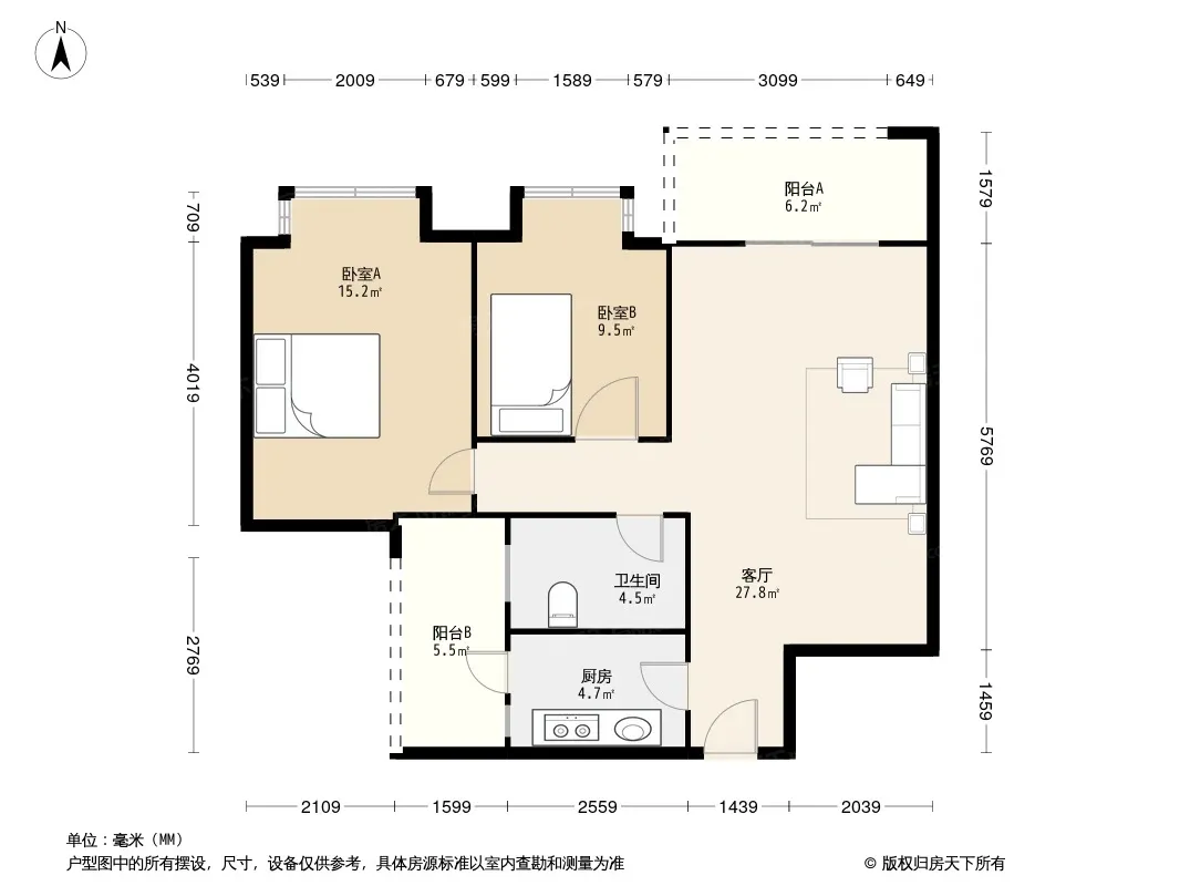 户型齐全,主打户型方正,双阳台二居