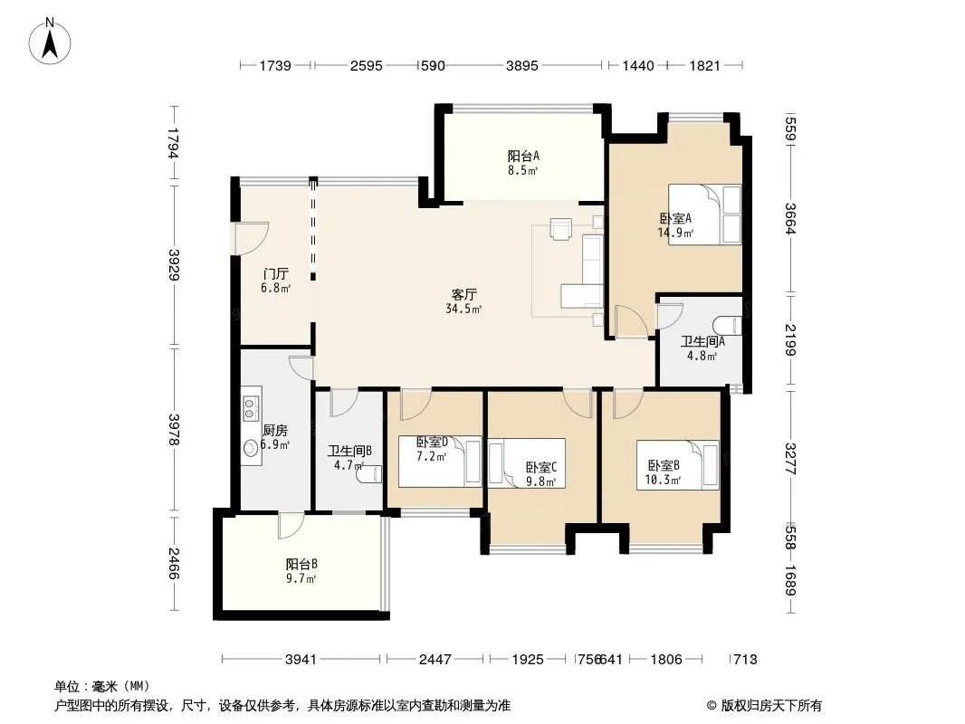 天府美岸 4室2厅 西北
