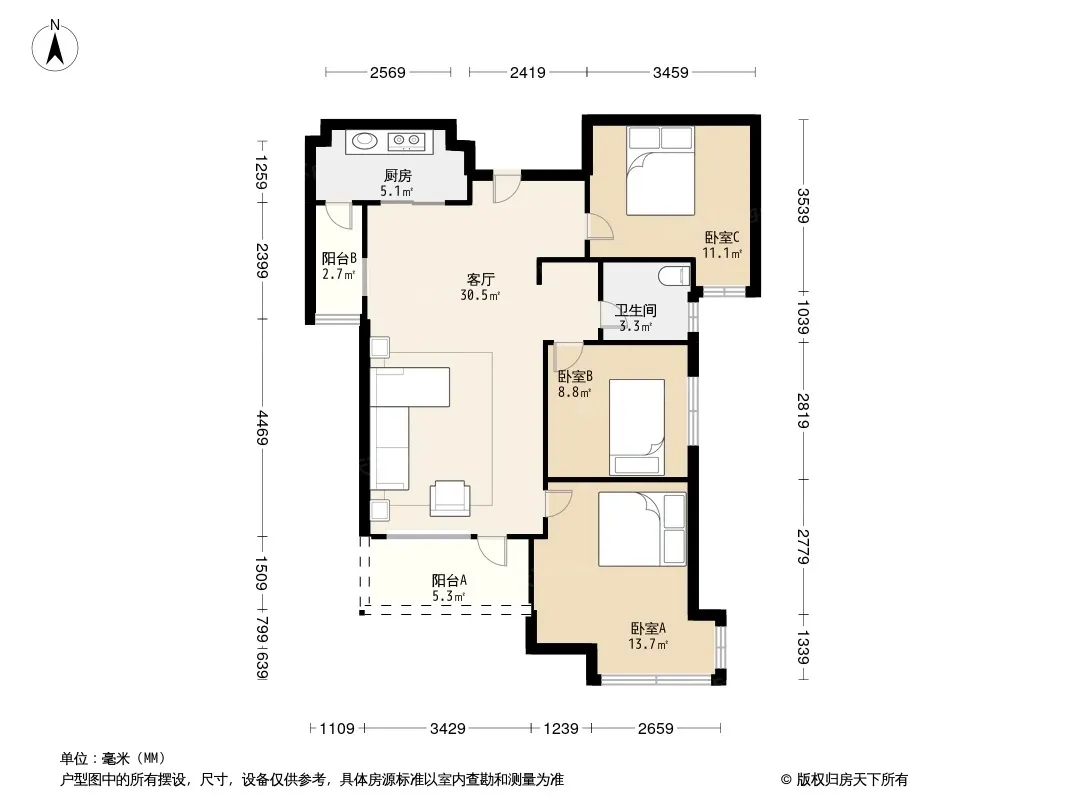 *获取完整户型报告,同时会有免费语音讲解服务