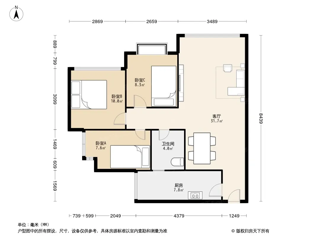 荣盛紫提东郡 3室2厅 南