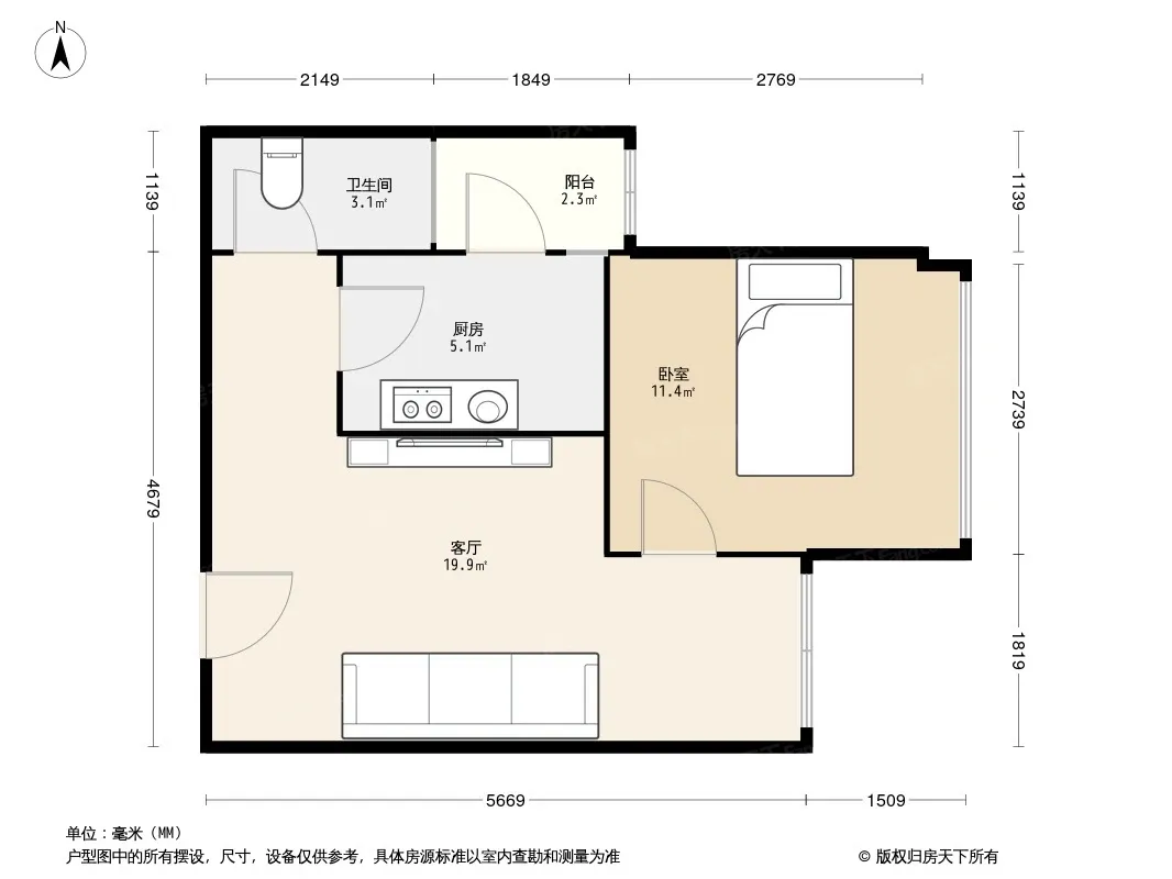 荣盛香榭兰庭二期 1室1厅 北