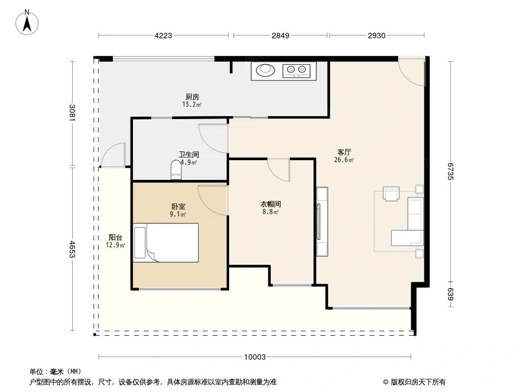 户型齐全,主打明厨,客厅朝南一居