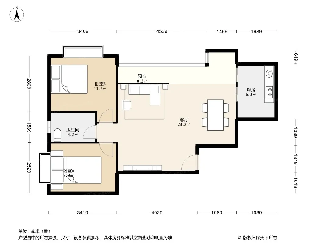 户型齐全,主打双卧朝南三居