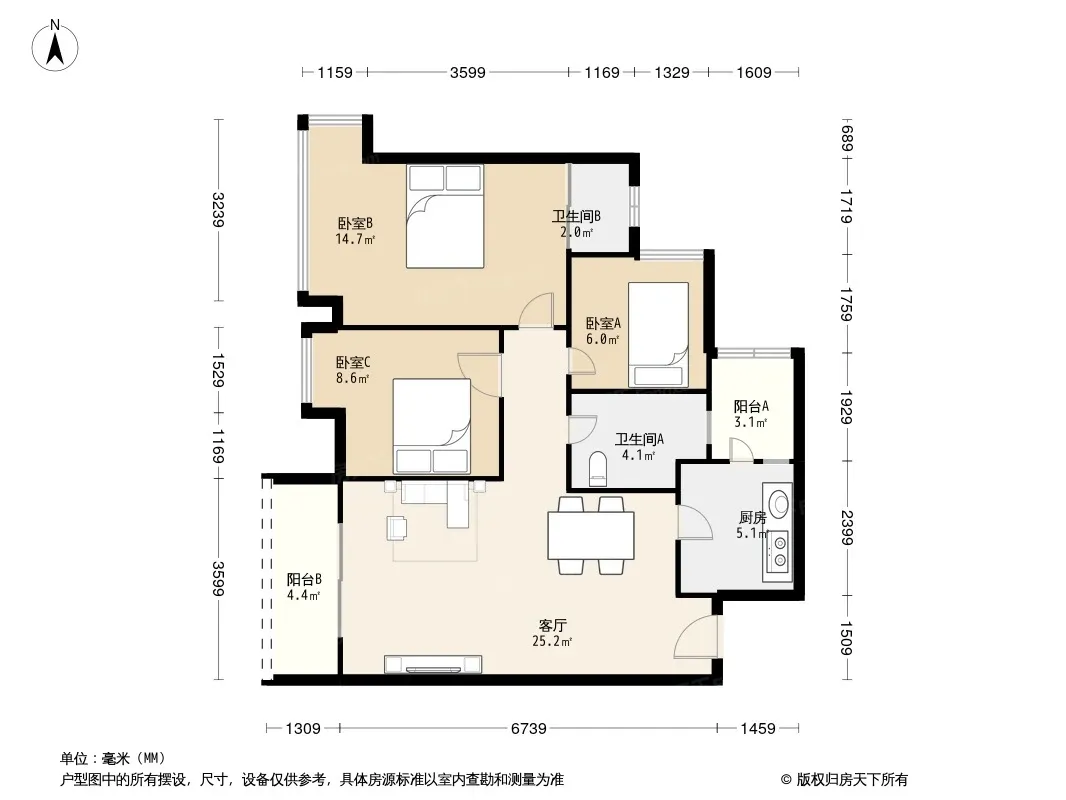 户型齐全,主打户型方正,双阳台,双卧朝南三居
