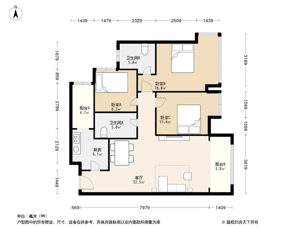 户型齐全,主打户型方正,双阳台,双卧朝南三居