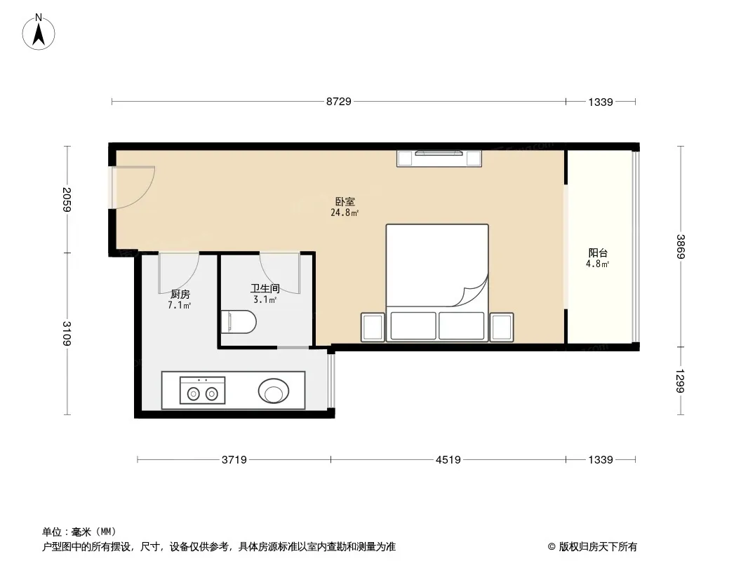 隆鑫九熙三期 1室1厅 东