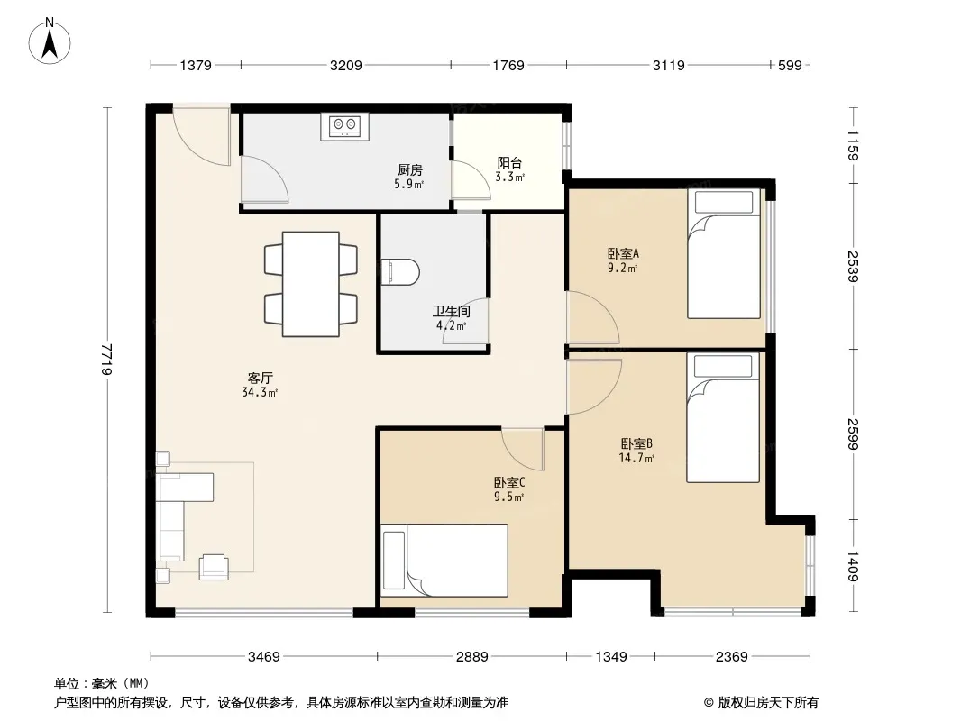 户型齐全,主打明卫,客厅朝南三居