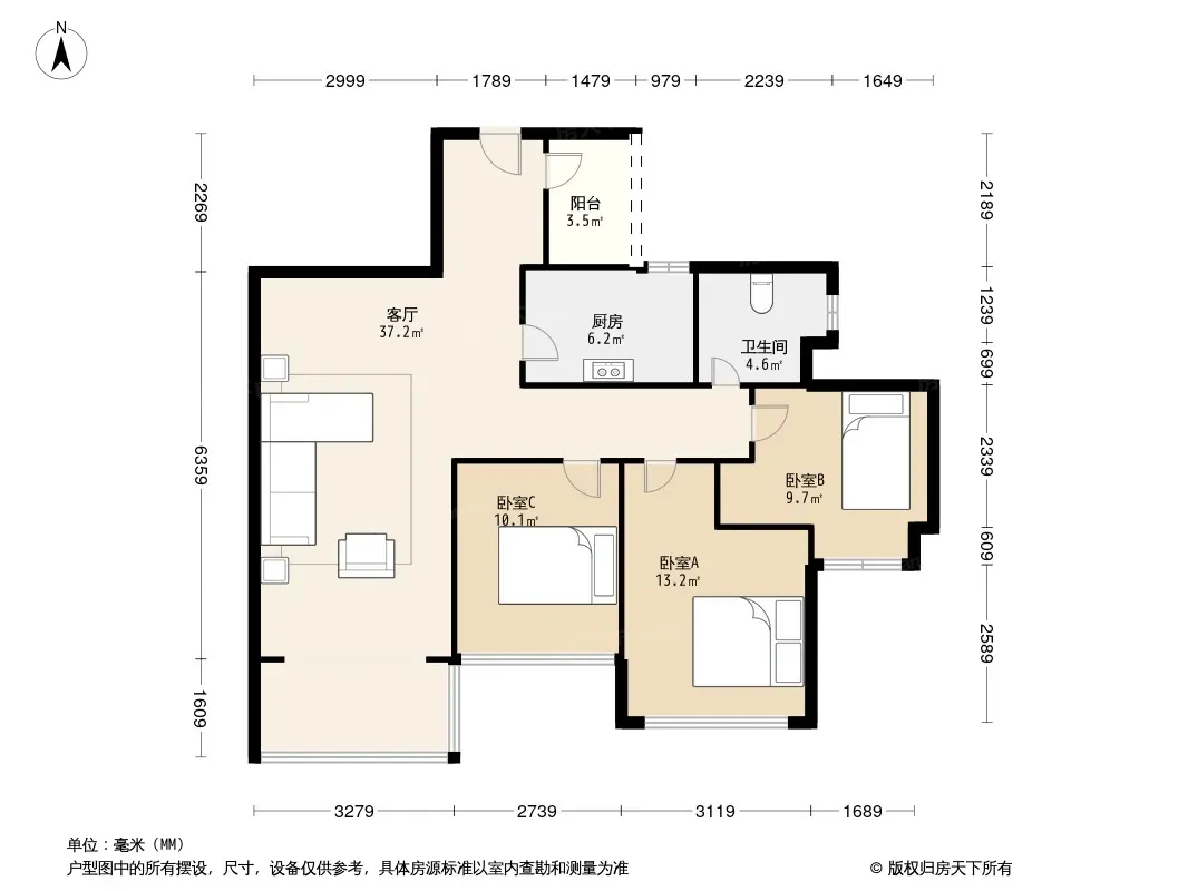 户型齐全,主打露台,观景飘窗三居