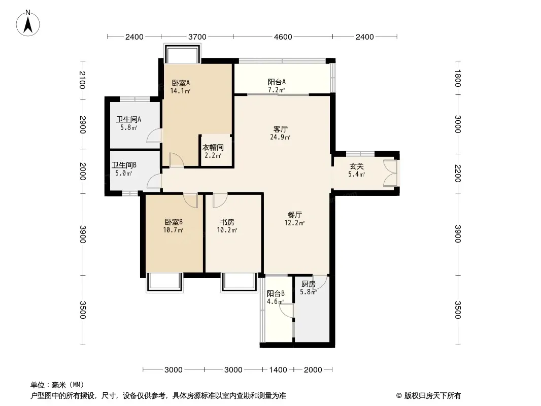 户型齐全,主打动静分离,主卧带卫三居