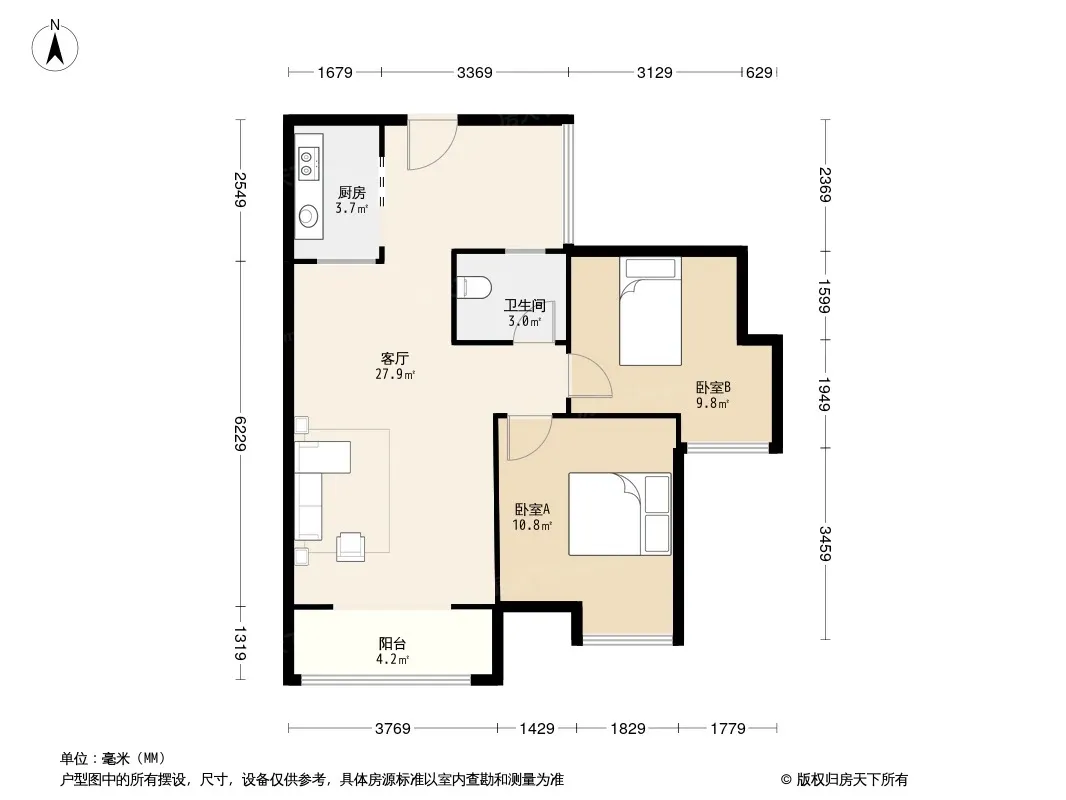户型齐全,主打明厨,明卫,客厅朝南二居