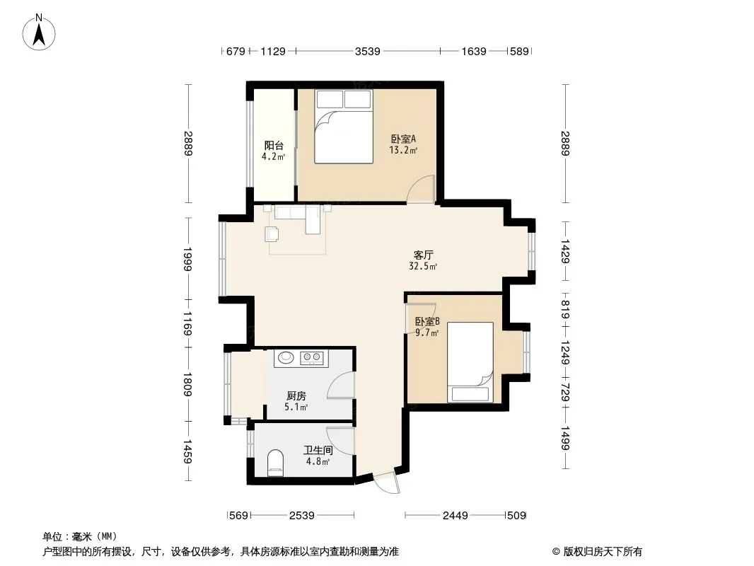 上东一号二期 2室1厅 南 北