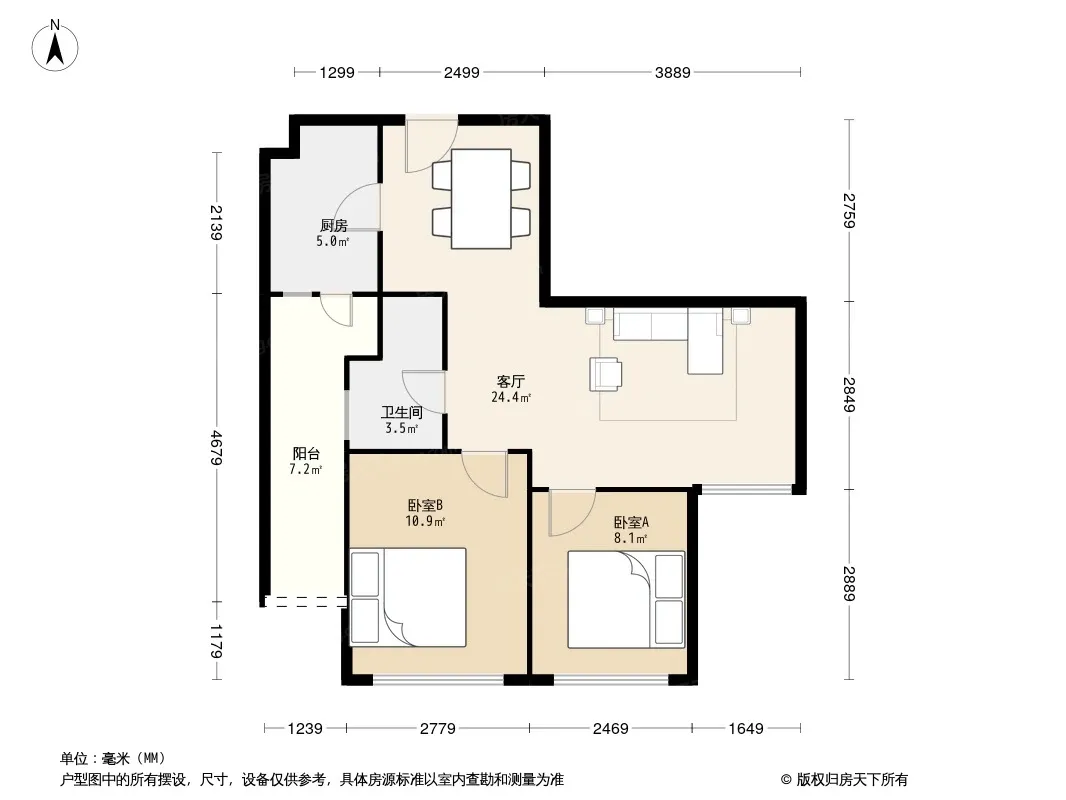 户型齐全,主打厨卫不对门,全明格局,餐客分离二居
