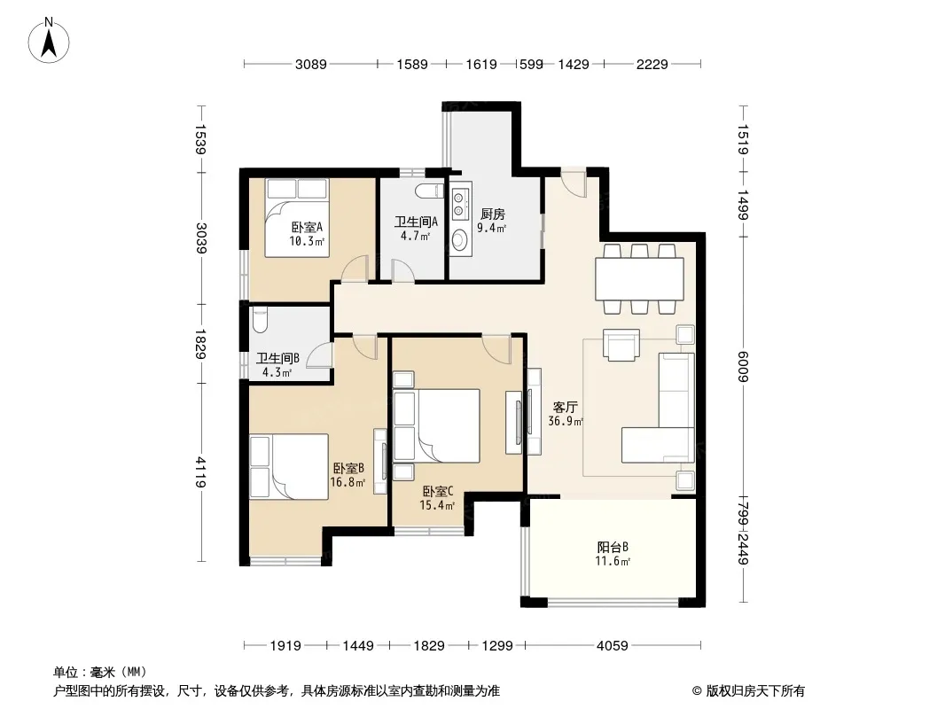 户型齐全,主打明厨,客厅朝南,双阳台,双卧朝南,主卧朝南三居