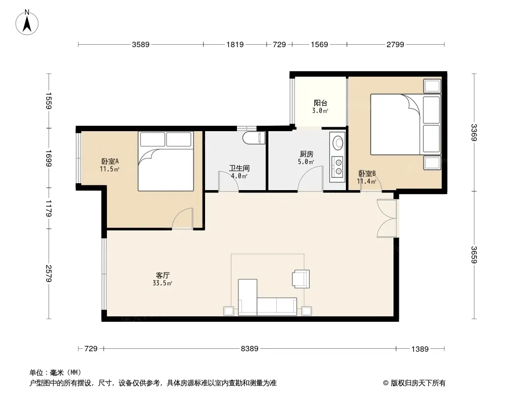 户型齐全,主打明厨,客厅朝南,双阳台,双卧朝南,主卧朝南三居