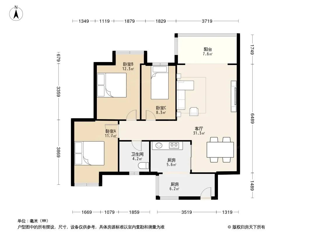 户型齐全,主打明厨,客厅朝南,双阳台,双卧朝南,主卧朝南三居