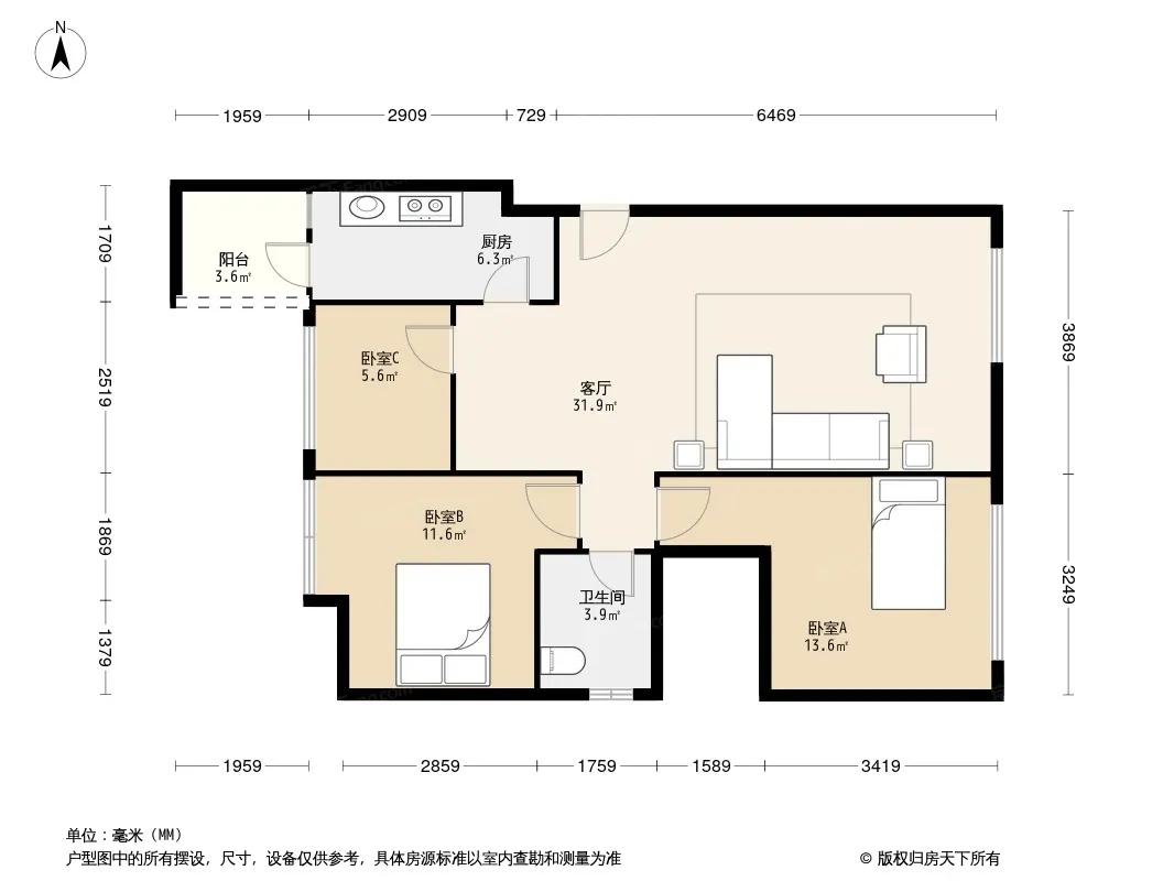 *获取完整户型报告,同时会有免费语音讲解服务