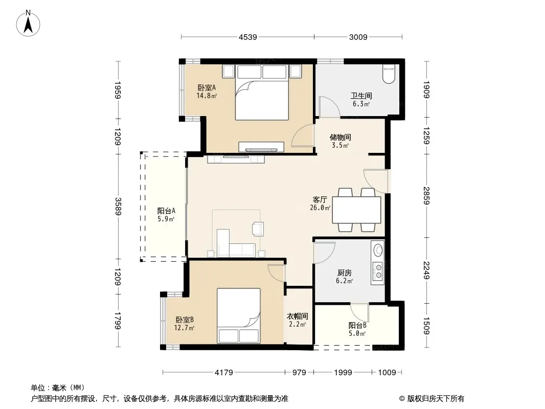 户型齐全,主打双阳台二居