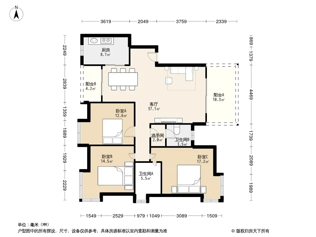 户型齐全,主打户型方正,明卫,明厨,客厅朝南,全明格局二居