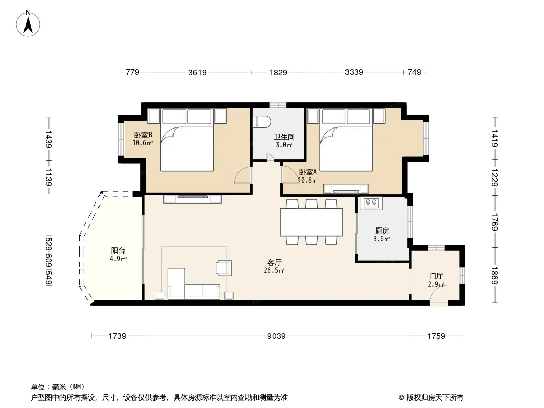 户型齐全,主打户型方正,明卫,明厨,客厅朝南,全明格局二居